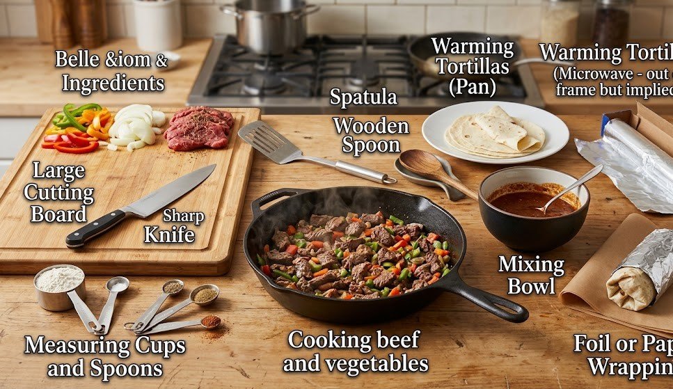 • 1 Large skillet For cooking beef and vegetables