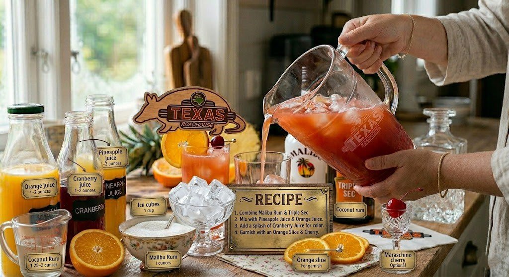 A fruity, refreshing tropical punch inspired by Texas Roadhouse—perfectly balanced with citrus, cranberry, and a hint of sweetness. Great for parties or a summer drink.